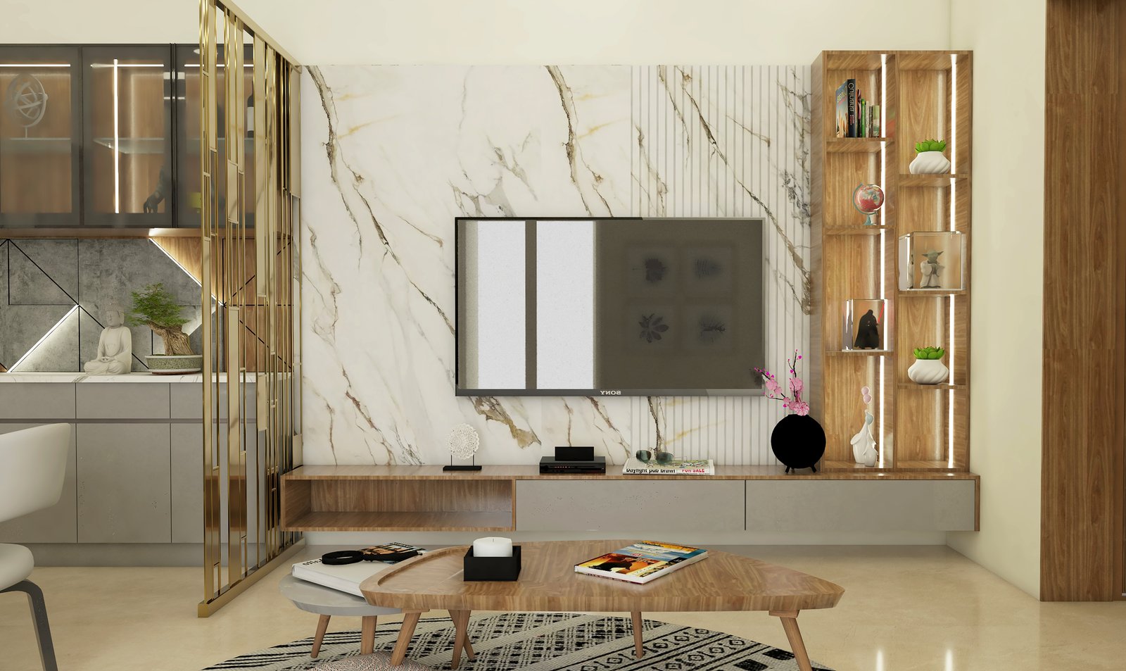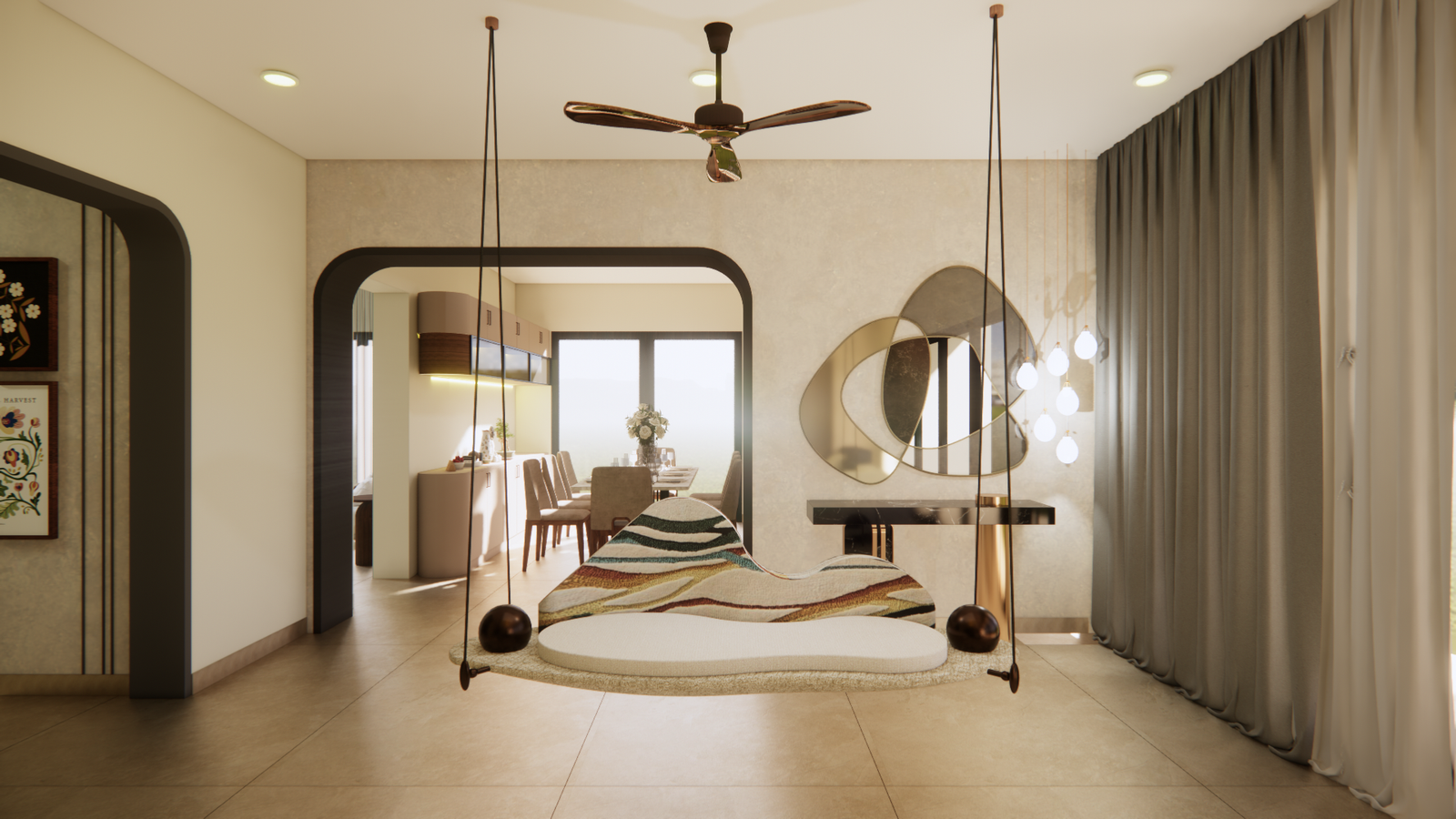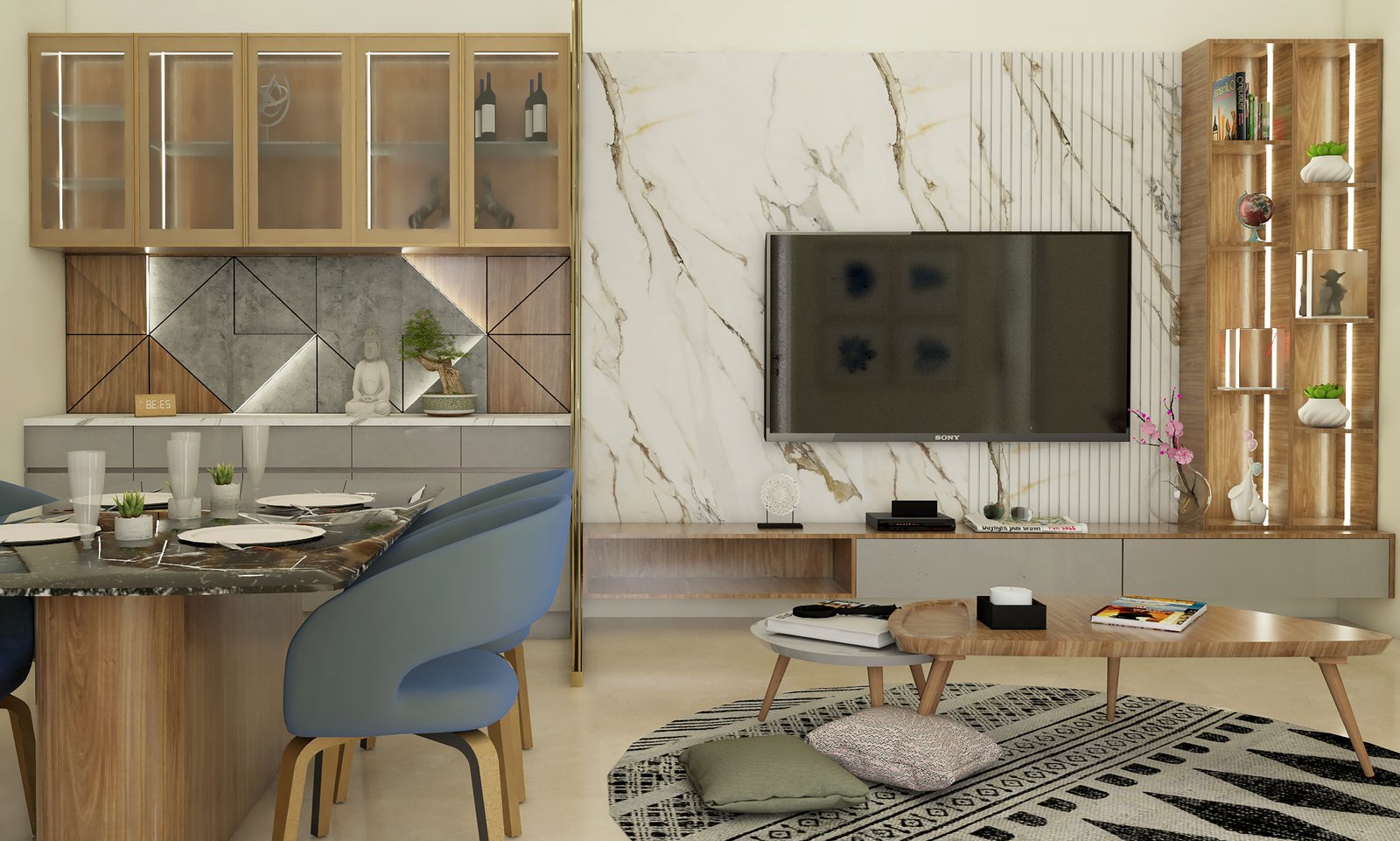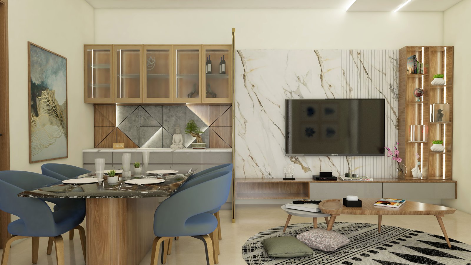 Each element is carefully chosen to serve both aesthetic and functional purposes, ensuring a harmonious balance throughout the room.